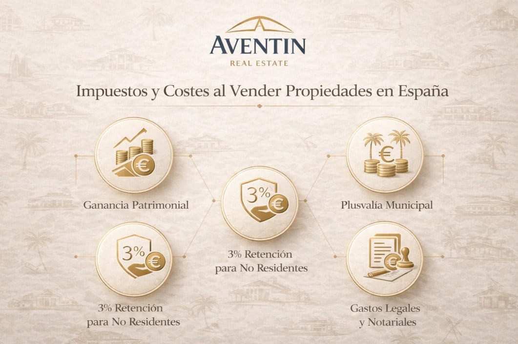 Al vender una propiedad en España, el vendedor suele enfrentarse a varios impuestos. Los principales son el impuesto sobre la ganancia patrimonial (IRPF o IRNR) y el impuesto municipal de plusvalía, que se calcula en función del incremento del valor del suelo.