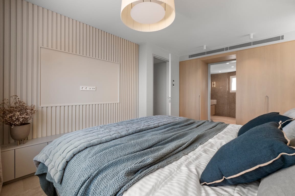 The elegant interior layout has been carefully designed for both functionality and sophistication. It features three spacious bedrooms, two modern bathrooms (one en suite), a guest toilet, a fully equipped designer kitchen, a separate laundry area, and even a climate-controlled wine cellar. Every detail reflects refined taste and high standards of quality. With central heating, underfloor heating in the bathrooms, and air conditioning throughout, the apartment ensures optimal comfort in every season, making it ideal for year-round living or as an exclusive second home in Mallorca.