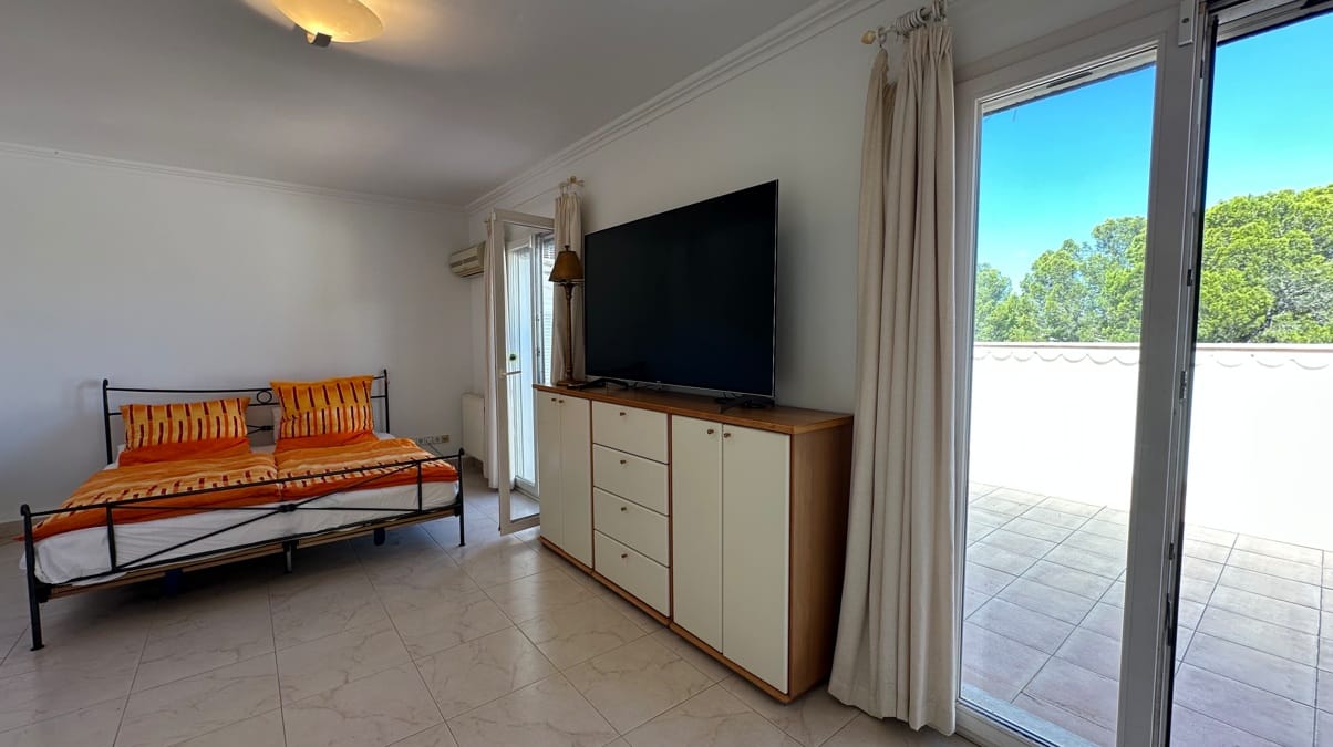 Upstairs, the master suite provides its own bathroom, a private terrace, and partial sea views, creating a peaceful retreat with added privacy. The layout offers comfort for family living while maintaining strong potential for modernization or further development.