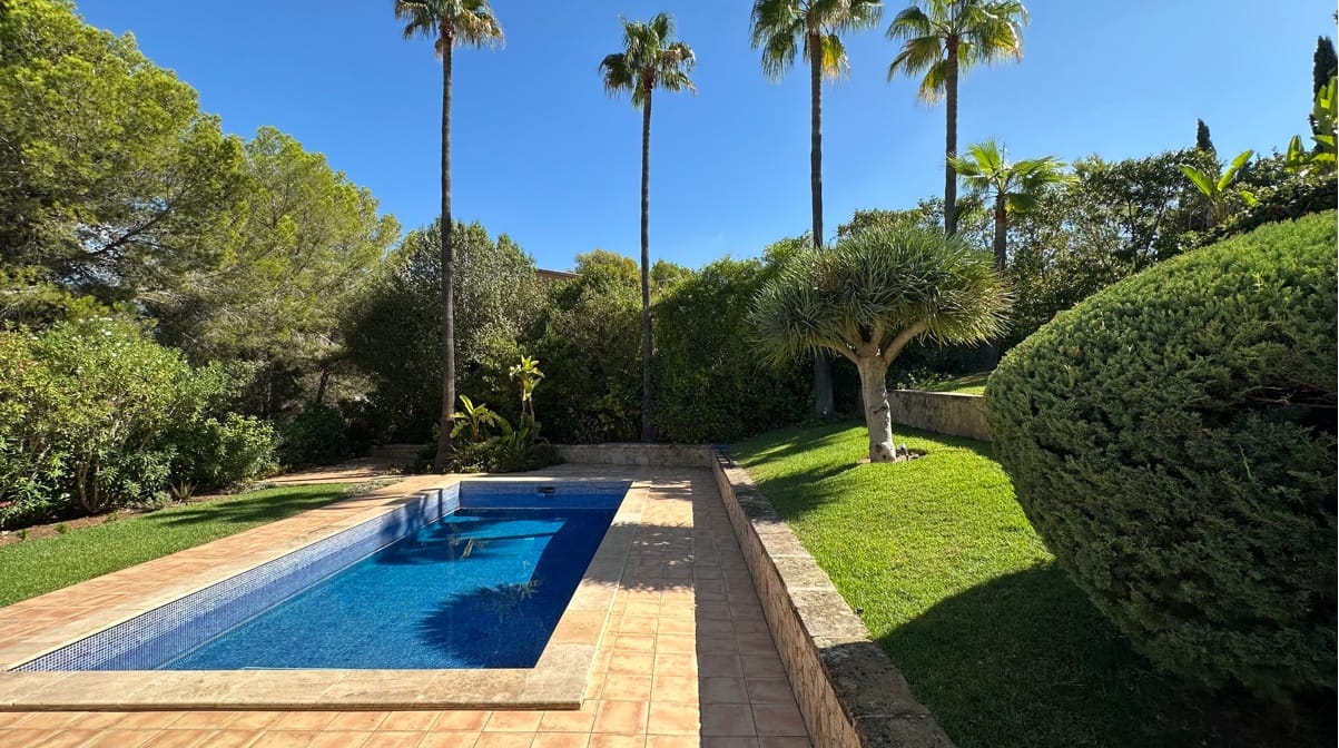 The outdoor areas are designed to embrace the Mediterranean lifestyle, featuring a private swimming pool, landscaped gardens, and multiple terraces ideal for relaxation or entertaining guests. In addition, the property offers the possibility to expand the built area, add more bedrooms, or even create an independent apartment — making it a highly attractive option for buyers seeking a customizable villa in Santa Ponsa.
